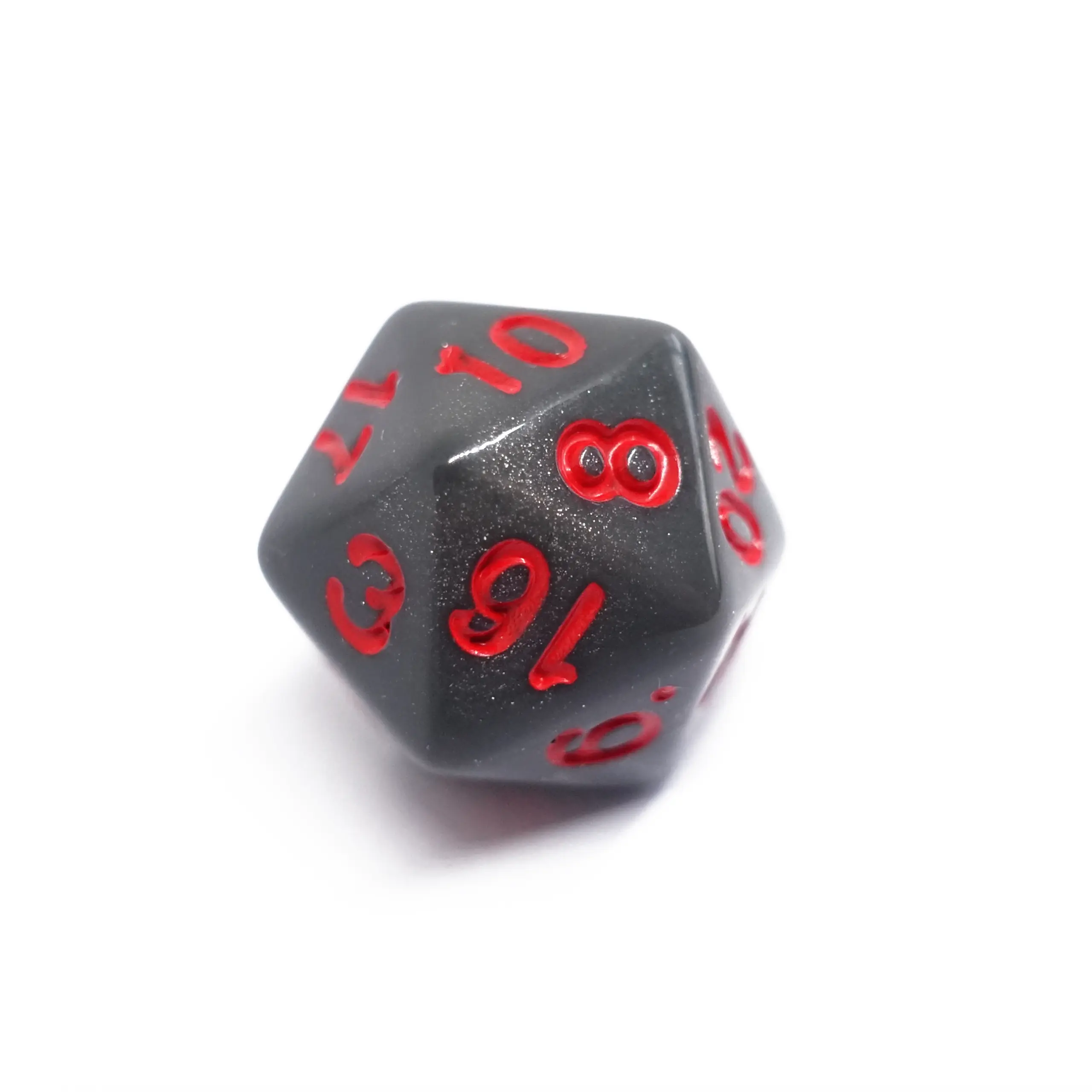 🎲 Smooth grey plastic with vibrant red ink and a polished finish