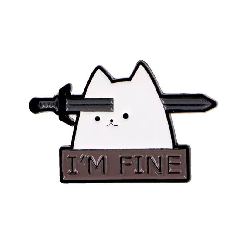 Sometimes you're down, but not out. This enamel pin features a cat with a sword clean through its head, calmly stating: "I'm Fine." It’s equal parts unbothered and unhinged — perfect for D&D players, emotionally exhausted spellcasters, or anyone who’s ever pushed through the chaos with a smile.